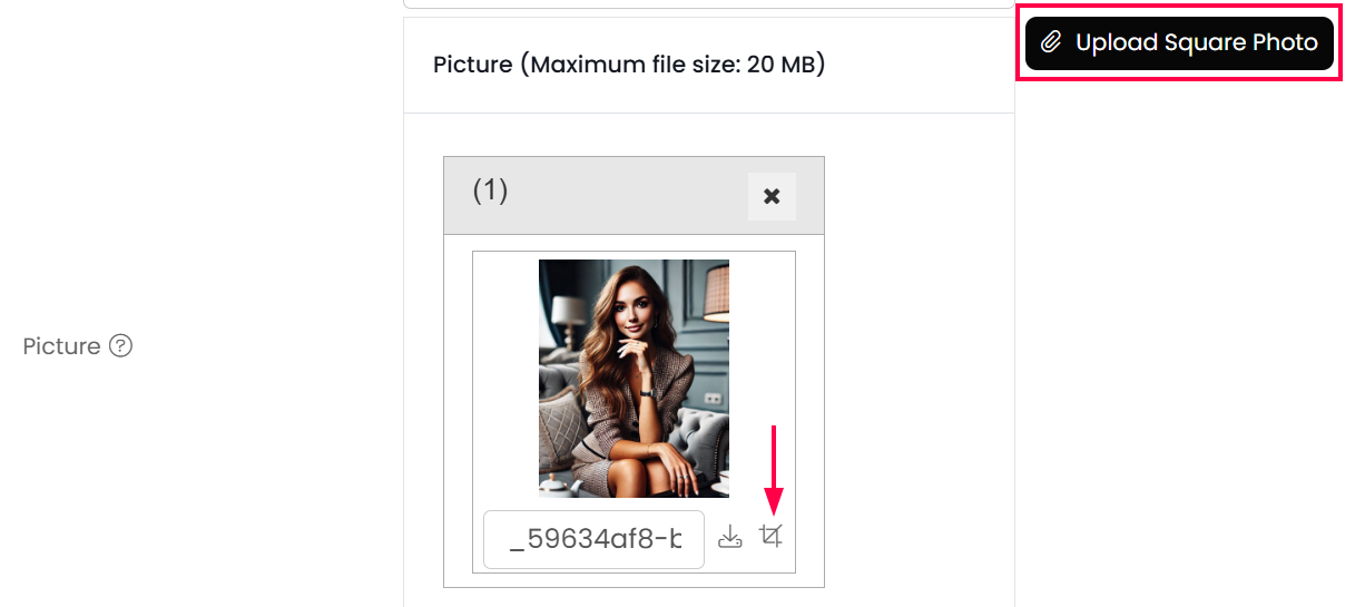 2. Scroll down to the Picture field and select Upload Square Photo.
