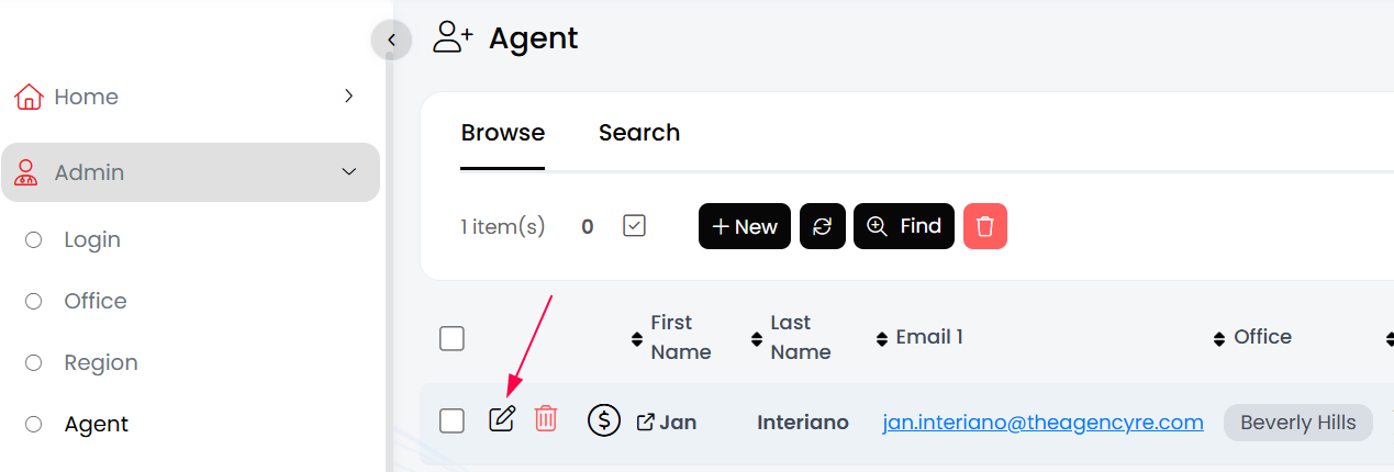 1. Open the agent’s profile in APT by clicking the Edit pencil.