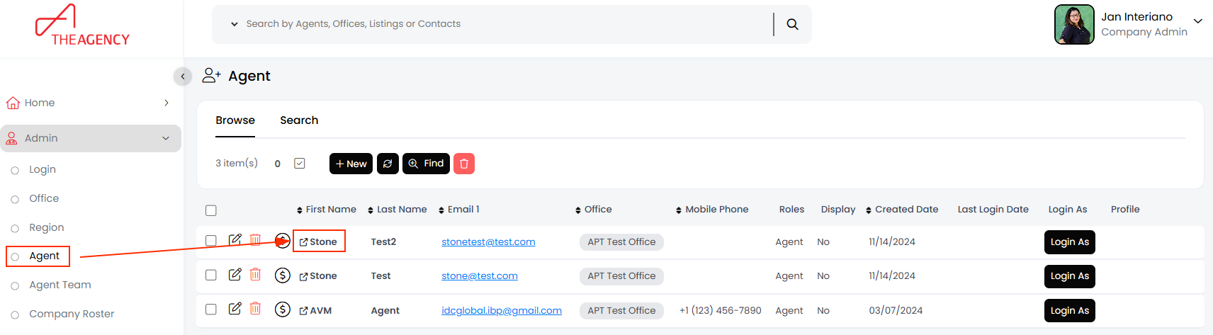 3. Click on the agent’s first name (This step is crucial. Clicking the edit pencil opens a different window).