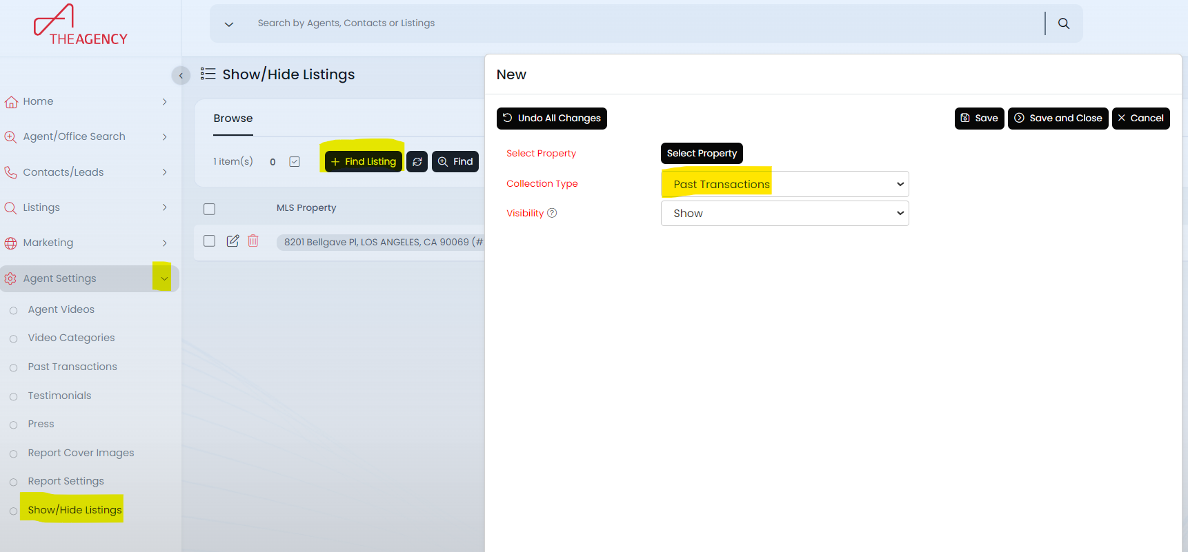 - Navigate to Agent Settings, then select Show/Hide Listings.