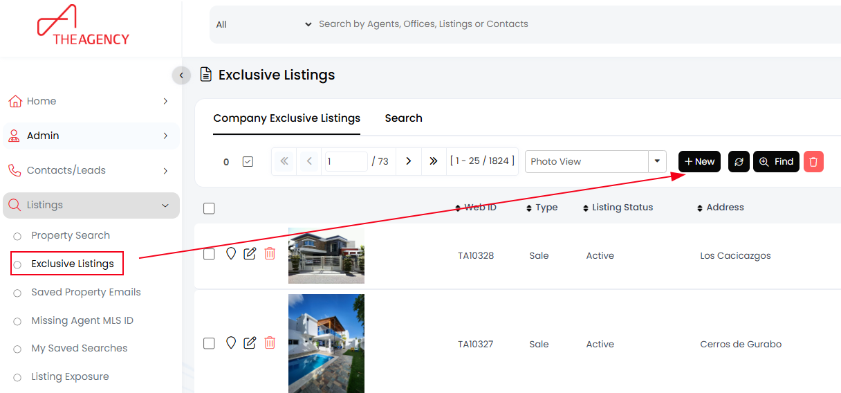- Navigate to Listings and then select Exclusive Listings