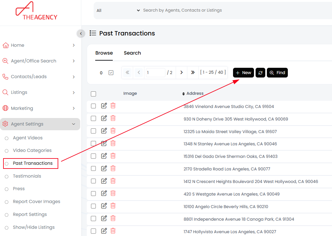 - Navigate to Agent Settings, then select Past Transactions